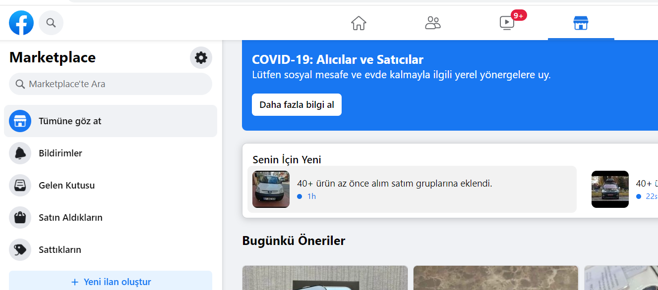 Facebook Marketplace ile aklınıza gelen her türlü ürünlerinizi ikinci el ve sıfır olarak satabilirsiniz.